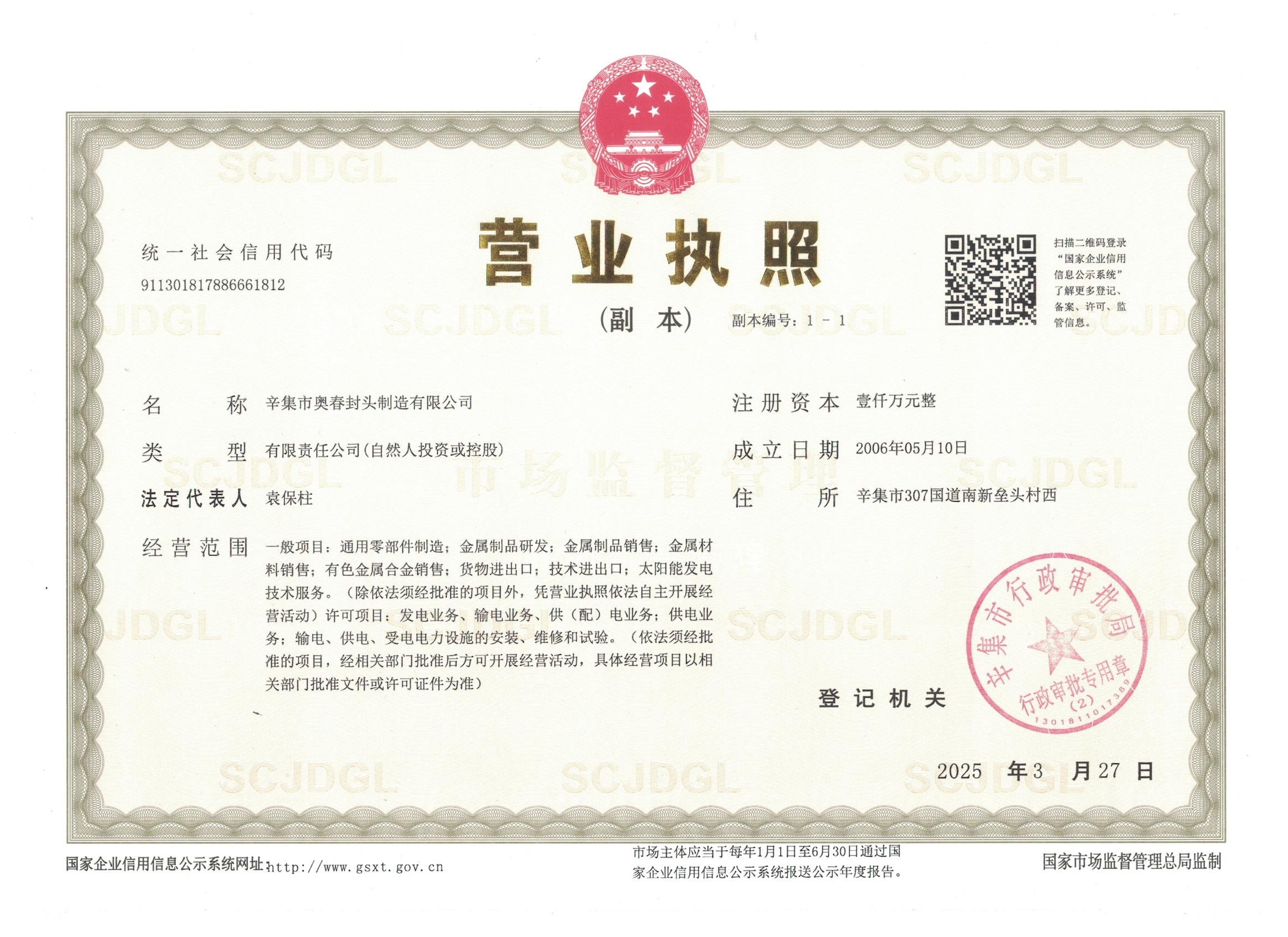 辛集市奧春封頭制造有限公司成立于2006年,坐落于河北省辛集市新壘頭工業(yè)區,地理位置優(yōu)越,毗鄰307國道,北接黃石高速,交通便捷。公司占地面積35000平方米,建筑面積28000平方米,總投資達2億元人民幣,是一家專(zhuān)業(yè)制造封頭的廠(chǎng)家。2006年公司成功取得國家A3封頭制造許可證,標志著(zhù)其產(chǎn)品質(zhì)量和技術(shù)水平得到了國家權威機構的認可。
